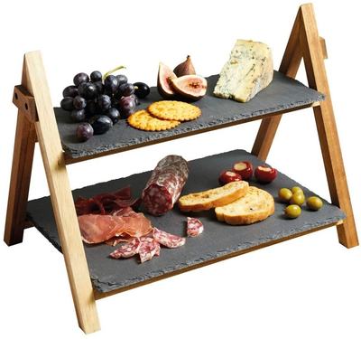 - NATURAL BEAUTY: From Artesa comes this hand-finished antipasti stand, made of natural acacia wood and dark grey slate