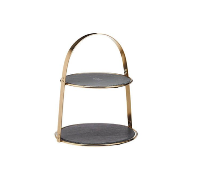 - Embrace geometric style with this lavish 2-tier serving stand from Artesà, crafted in natural slate and gleaming, brass-coloured steel
