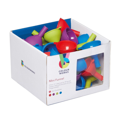 The display includes thirty-six mini funnels in each of the key Colourworks colours, so they can be co-ordinated with a range of other items in the Colourworks range, allowing you to mix, match and co-ordinate your kitchen in a striking array of colours.