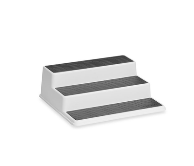 - Made of durable plastic, with non-slip rubber pads on each tier. It grips food containers to stop them skidding around in your cabinets