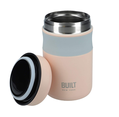 BUILT Double Wall Vacuum Insulated Food Flask for Hot and Cold Foods, Stainless Steel, Pale Pink, 490 ml