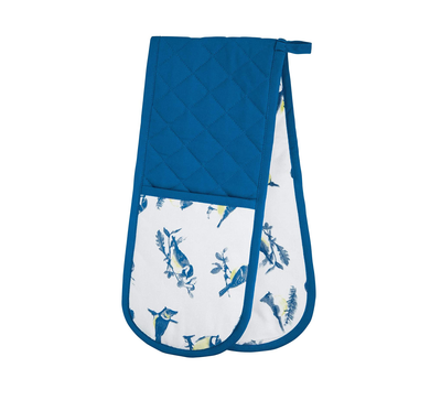 KitchenCraft Double Oven Gloves, Blue Birds Printed Pattern, 100% Cotton, White / Blue, 87 x 18 cm