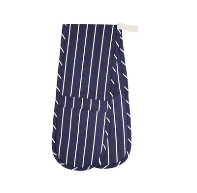 KitchenCraft Double Oven Gloves with 'Butcher's Stripe' Design, Cotton/Polyester, Navy Blue/White, 87 x 18.5 cm