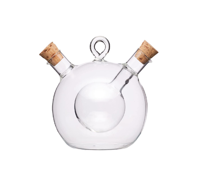 KitchenCraft World of Flavours 2-in-1 Round Olive Oil Dispenser and Vinegar Bottle - Clear Glass