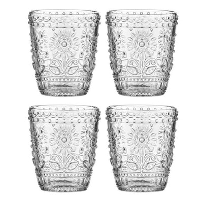 With a retro 70's vibe , this vintage inspired pressed glass range is perfect for everyday use. With a Sunflower emblem embossed around the glass, this glassware range with have you dreaming of long summer days sitting in the garden with a refreshing drink and a good book.