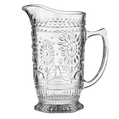 This Retro Clear Glass jug is as functional as it is beautiful. Highlighted with a detailed sunflower design that reflects light beautifully, this jug helps to create a stunning table setting and is perfect for having celebratory drinks at home.