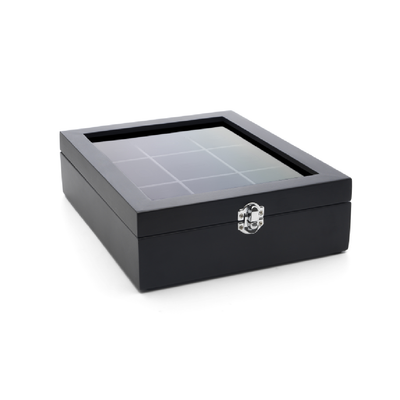 Handy tea box for storing teabags. Made of high-quality bamboo in trendy black. Thanks to the transparent lid you can always see the content. Available with 6, 9 or 12 compartments.
