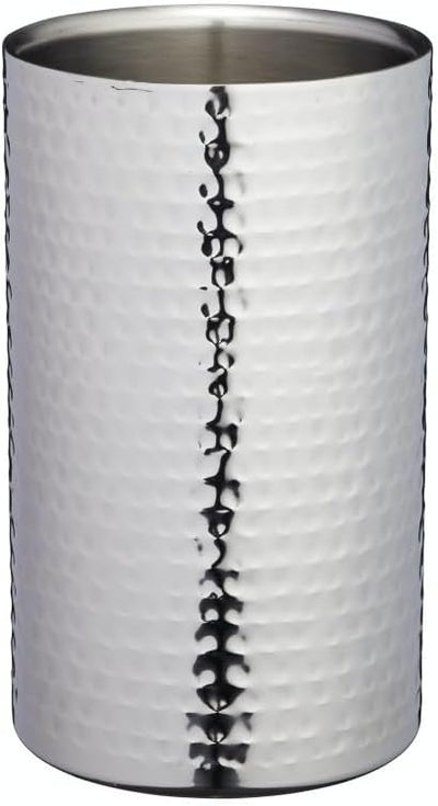 A refined stainless-steel wine cooler featuring a hammered finish and double-wall insulation. Designed to chill bottles without ice, it keeps wine cold while preventing condensation—making it a stylish, mess-free solution for dining or entertaining.