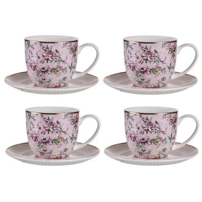 CHINOISERIE PINK CUP & SAUCER SET OF 4