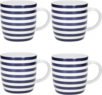 KitchenCraft Set of 4 Blue and White Striped Coffee Mugs