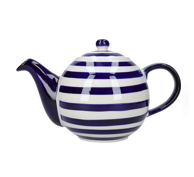 London Pottery JY18LT02 Out of the Blue Globe Teapot with Strainer, Stoneware, Navy Blue Stripe Design, 4 Cup (900 ml)