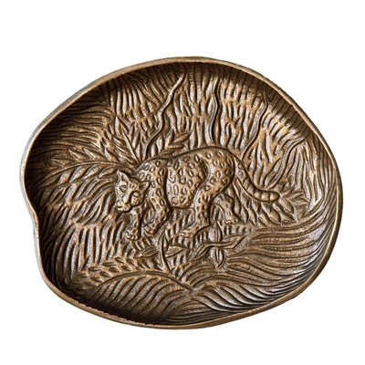 Artesà Oval Serving Platter, Rustic Embossed Metal Plate with Leopard Design, 24 x 21cm
