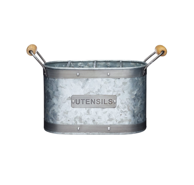 - Raw meets industrial: crafted from rust-resistant, galvanised steel with natural mango wood handles, finished with a 'UTENSILS' label