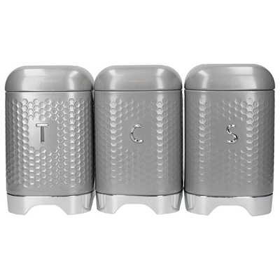 KitchenCraft Lovello Storage Canisters for Tea Coffee and Sugar in Gift Box, Textured Hexagonal Finish, Steel, Shadow Grey
