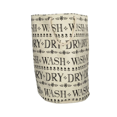 - The ivory-coloured bag features the words 'Wash' and 'Dry' repeated in the signature Stir It Up font, along with a floral motif