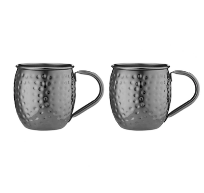 SPENCER HAMMERED BLACK HANDLED 2PK MUG