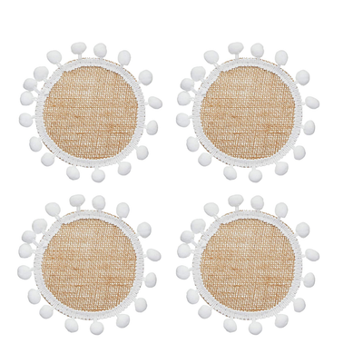 KitchenCraft Natural Elements Hessian Drink Coasters Set , 4 Pack of Woven Jute Mats with Pom Pom Decorations, 15cm NECTHESPK4 medium